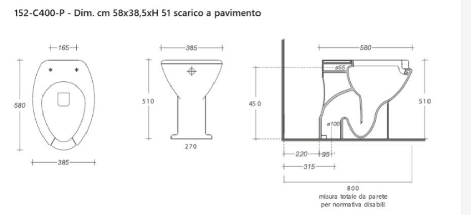 VASO DISABILI Scarico a Pavimento