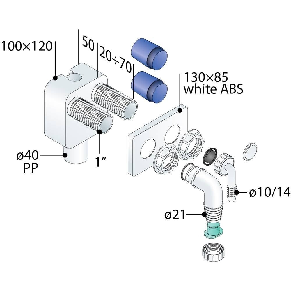 SIFONE INCASSO CON DOPPIO ATTACCO LAVATRICE + ASCIUGATRICE