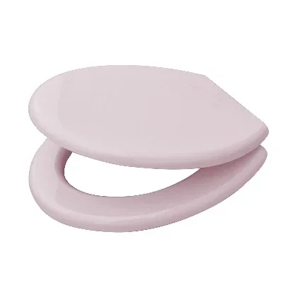 Sedile wc universale rosa, legno stabilizzato, cerniere regolabili, ottone cromato.