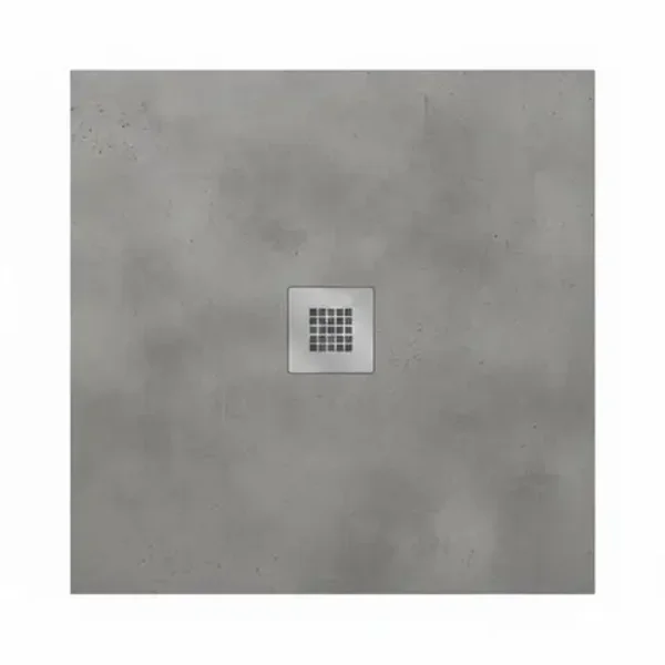 Piatto doccia quadro ultra piatto H. 2,7 cm, in resina minerale, rivestito in gelcoat, con trattamento antibatterico e antiscivolo C3. Alta resistenza ad agenti chimici, agli urti e ai graffi. Texture in stile ardesia anche sui lati. Disponibile in quattro colori. Griglia quadrata in acciaio inox AISI 304. Fornito senza PIletta